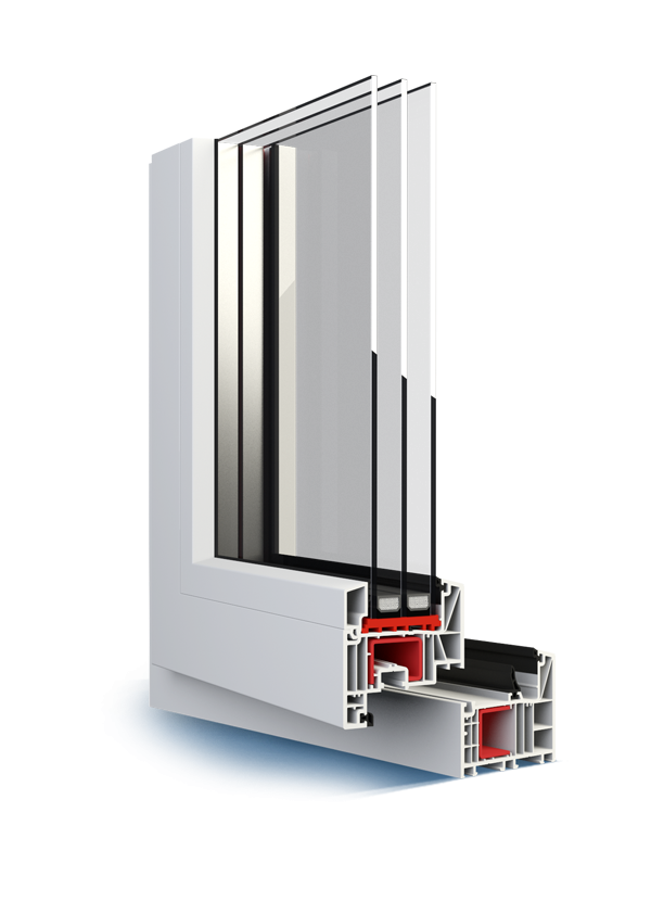 Le finestre realizzate con il sistema BluEvolution 82 sono dotate nello standard di vetro combinato a due camere con coefficiente di isolamento termico molto basso. Un grande vantaggio sono i profili stessi che non sono solo realizzati in PVC di alta qualità, ma soprattutto costituiscono un ottimo isolatore termico garantito dalla struttura del profilo a sei camere e il triplo sistema di guarnizioni. La profondità di costruzione di 82 mm, permette di applicare un vetro combinato fino a 53 mm di larghezza. È ideale dunque applicare il vetro combinato a due camere. Se dotiamo la finestra anche di telaio a taglio termico distanziale, otterremo i parametri di scambio termico che corrispondono a quelli della finestra passiva.