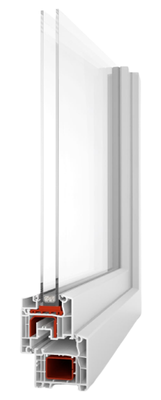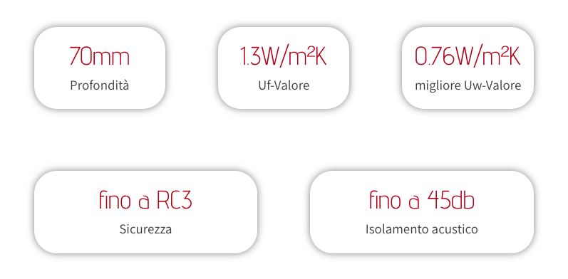 Uw=0,99 W/m²K con vetro standard a tre lastre con Ug=0,6 e Psi=0,040 W/mK