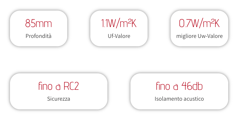 fino a RC2 di antieffrazionecon vetro a tre lastre con Ug=0,4 e Psi=0,030 W/mK