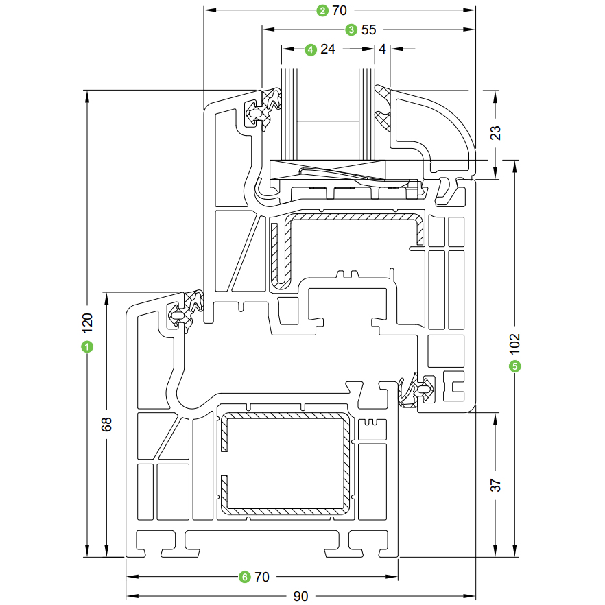 Eccellenti valori di isolamento acustico (a seconda della combinazione di profilo e vetro, è possibile ottenere valori di isolamento acustico fino a 47 dB).